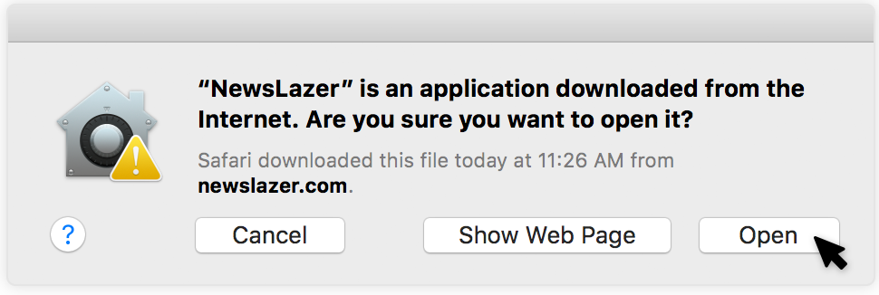4. Votre ordinateur vous demandera peut-être confirmation afin d'ouvrir l'application NewsLazer. Cliquez sur Ouvrir pour continuer. Si l'ordinateur ne vous pose pas la question, passez à l'étape suivante.