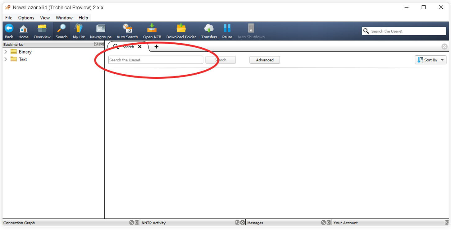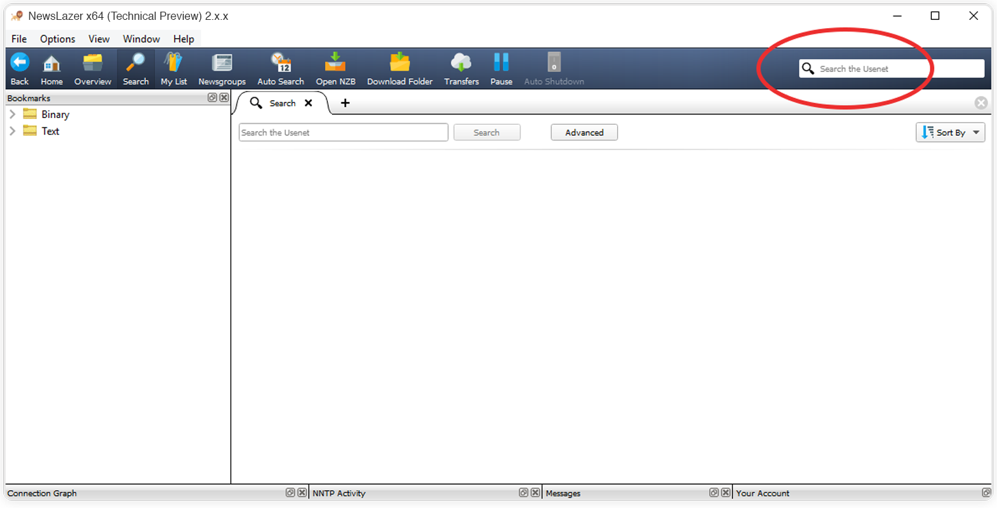 2. Cliquez sur le champ de Recherche Usenet, situé en haut du lecteur. Saisissez votre recherche puis appuyez sur Entrée.